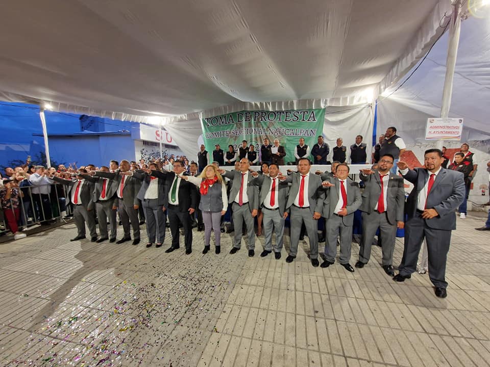 El acto se llevó a cabo en la explanada de Palacio Municipal, y frente al líder estatal, Herminio Cahue Calderón y secretarios estatales del gremio en el Edomex, tras obtener ventaja en el proceso electivo de renovación de la delegación Naucalpan, en la cual y de acuerdo al acta de escrutinio, ganó con 3 mil 866 votos, lo que representa el 93 por ciento de las 4 mil 365 boletas, con lo que Tomás Palomares Parra logró la continuidad, por otros 4 años más.