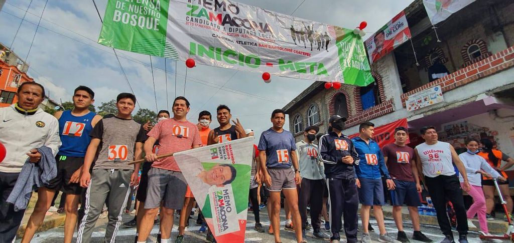 Huixquilucan, Méx.- Con el objetivo claro de triunfar, para construir el cambio y mejorar la calidad de vida de la gente, cientos de personas de distintas partes del municipio participaron en la Gran Carrera Atlética de San Bartolomé Coatepec, convocada por el candidato a diputado por el Distrito Local 17, Memo Zamacona, a quien la comunidad deportiva le refrendó su apoyo para garantizar que gane la elección el 6 de junio.