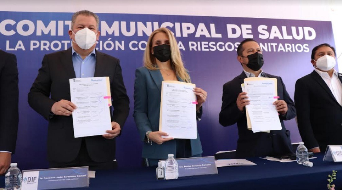 La presidenta municipal de Huixquilucan y el secretario de Salud del Estado de México encabezaron la instalación de los Comités Municipales de Salud, contras las Adicciones y para la Protección contra Riesgos Sanitarios de esta demarcación, a través de los cuales se implementarán políticas públicas que privilegien una vida sana para la población, al tiempo en que se establecerán estrategias en estas materias, acordes a la particularidad y necesidades locales, con el fin de atender de manera integral la salud de las y los huixquiluquenses.