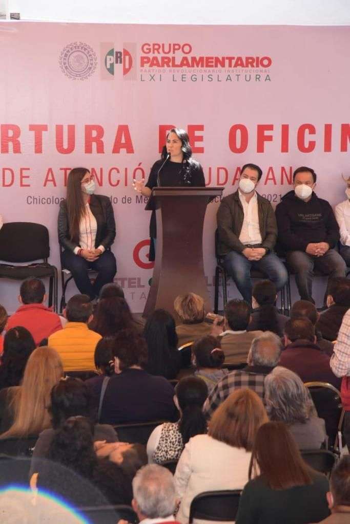 Chicoloapan, Méx.- La Presidenta del PRI en el Estado de México, Alejandra Del Moral Vela, encabezó la inauguración de la oficina de atención ciudadana de su compañera Gretel González Aguirre, diputada local por el distrito V, donde destacó que hoy este instituto político está de vuelta: “Está listo para, desde hoy, empezar a construir el triunfo del 2023”.