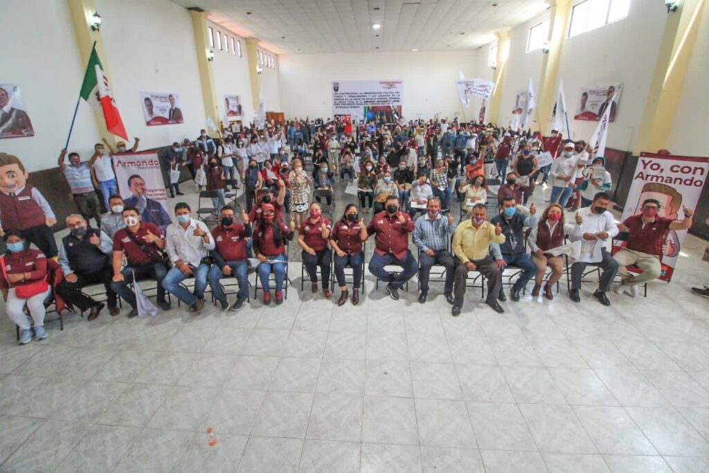 NICOLÁS ROMERO.- Al recibir el apoyo incondicional de trabajadores y líderes del Sindicato Mexicano de Electricistas (SME), quienes lo respaldan para la continuidad del cambio verdadero en el municipio, al considerar que es la única opción que puede garantizar el bienestar de los nicolásromerenses, el candidato de morena a la presidencia municipal Armando Navarrete López, aseguró que la 4T se va a sentir en cada una de las casas, comunidades, familias y personas de la demarcación, para mejorar la calidad de vida de la gente que la habita.