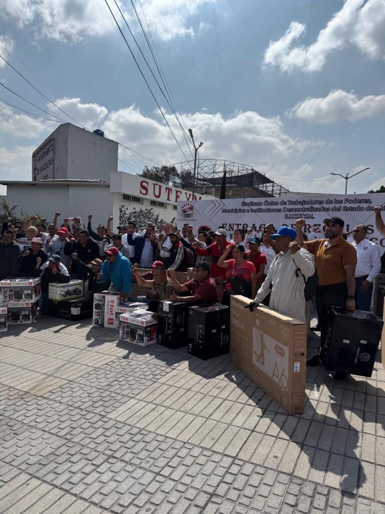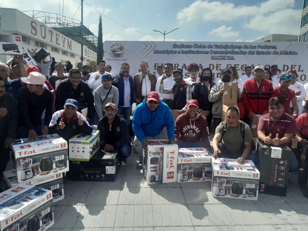 Las y los servidores suteymistas ganadores. acudieron a la sede sindical, ubicada a un costado del Palacio Municipal, para recibir sus premios, entre ellos, pantallas, artículos electrodomésticos, salas, comedores y autos, (estos últimos se entregaron durante el festejo desarrollado en el Parque Naucalli), entre otras cosas.